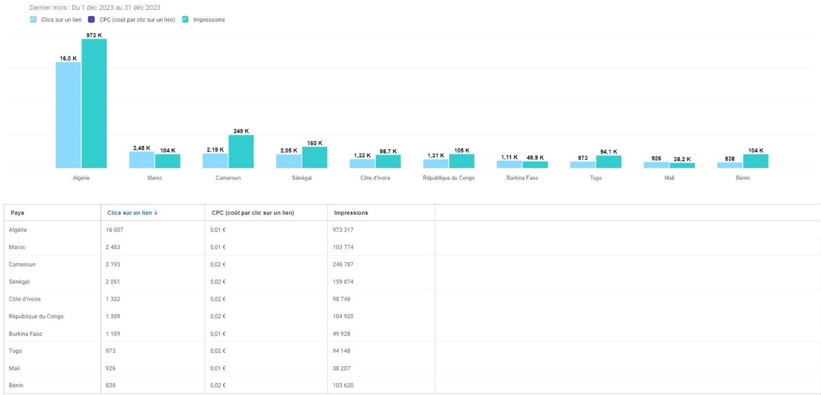 Ces résultats témoignent d’une optimisation fine du budget, obtenant un CPC exceptionnellement bas tout en atteignant une audience très large et qualifiée.