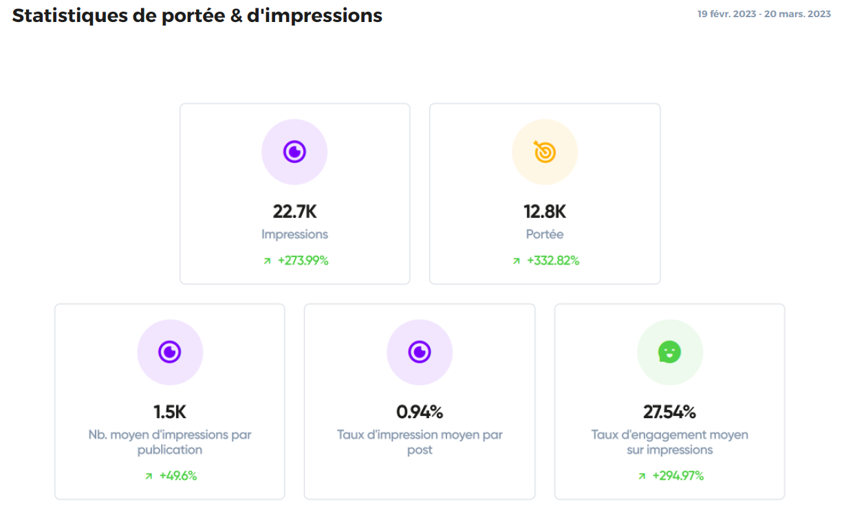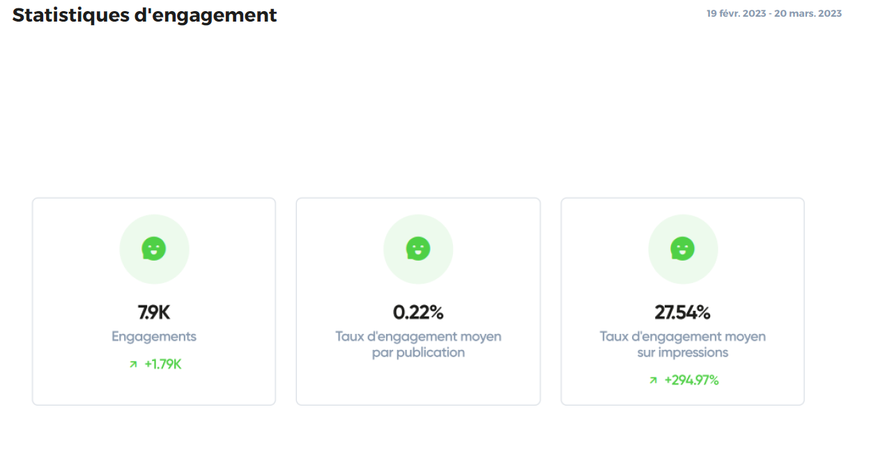 Engagement renforcé, dont une augmentation de 161% des visiteurs et de 210% des clics sur les publications, soulignant la pertinence et la qualité du contenu proposé.