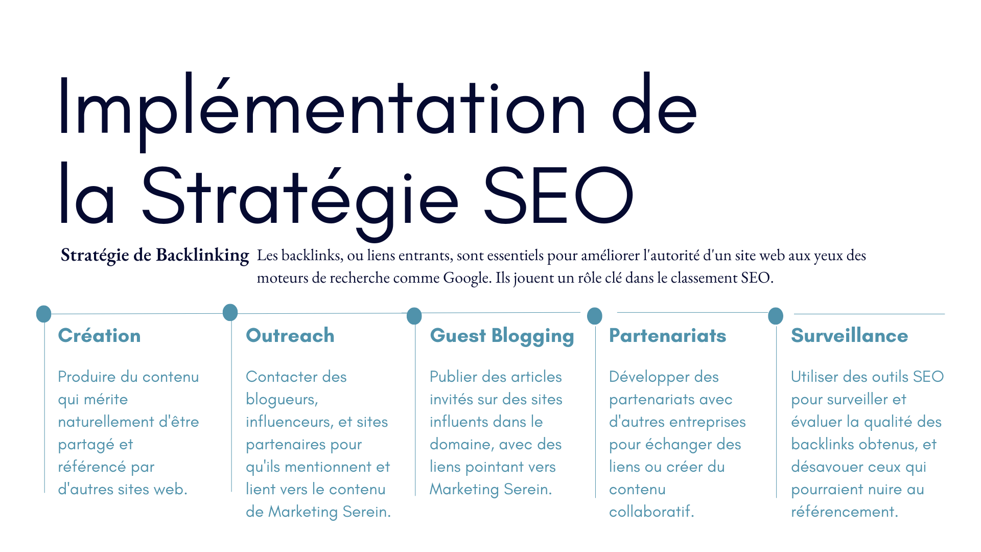 Bien que l’implémentation soit à venir, un plan complet de netlinking a été élaboré, incluant :
